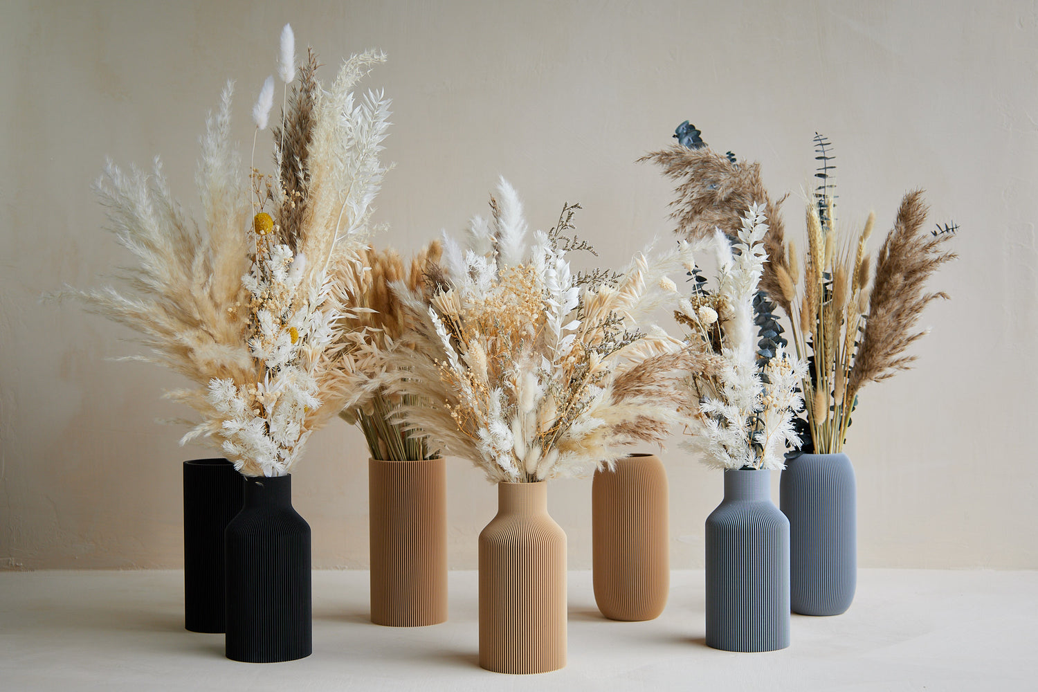 Carefully unwrap the flowers, shake them slightly to fluff up the plumes and place in vases without water. Dried flowers do not require watering and can be kept in the packaging until your event. Let the florals fluff up out of the packaging for at least 24 hrs before using them.